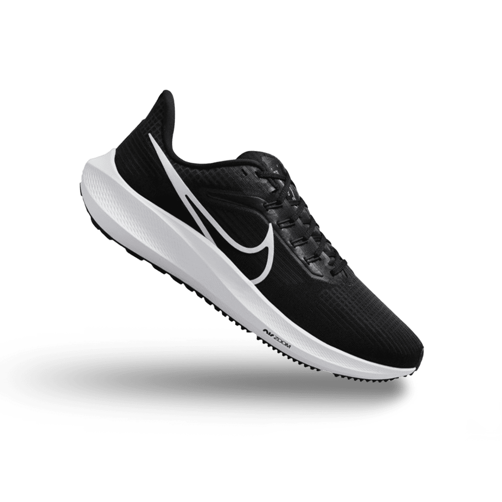 From short sprints to longer runs, elevate your stride with these men's Pegasus 39 trainers from Nike. In a Black colourway, these upgraded runners have a lightweight, breathable mesh upper, paired with a moulded midfoot band that supports your movements. Equipped with a secure lace-up closure, they're sat above Nike React and two Zoom Air units for an ultra-responsive ride. With a Waffle-inspired rubber outsole for reliable traction, these trainers are finished off with contrasting Swoosh branding at the sidewalls.