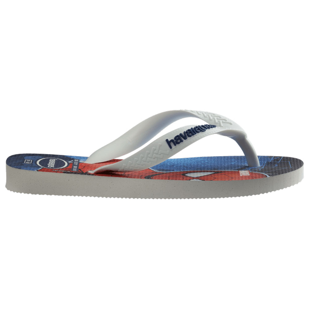 Unleash the power of superheroes with the Havaianas Kids Blue Top Marvel flip flops! Featuring iconic characters like Spiderman and the Hulk on the soles, these Havaianas kids flip flops are a sensational choice for little adventurers. Let your kids step into the Marvel universe with every stride in these action-packed flip flops. Crafted for comfort and style, these Havaianas kids flip flops are perfect for young fans of Marvel heroes. Elevate their footwear game with the Havaianas Kids Top Marvel flip flops and watch them embark on epic adventures in style!